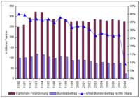 Seit 1993 sind die Beiträge des Bundes an die Aufwendungen der Kantone stark rückläufig. Im Jahre 1993 betrugen sie noch 119 Mio. Franken. In den vergangenen Jahren pendelten sie sich bei zirka 75 Mio. Franken ein, um nach der Schaffung des neuen Bundesgesetzes vom 6. Oktober 2006 (in Kraft seit dem 1. Januar 2008) über die Beiträge an die Aufwendungen der Kantone für Stipendien und Studiendarlehen im tertiären Bildungsbereich im Rahmen des Neuen Finanzausgleichs (NFA) auf 25 Mio. Franken jährlich abzustürzen.